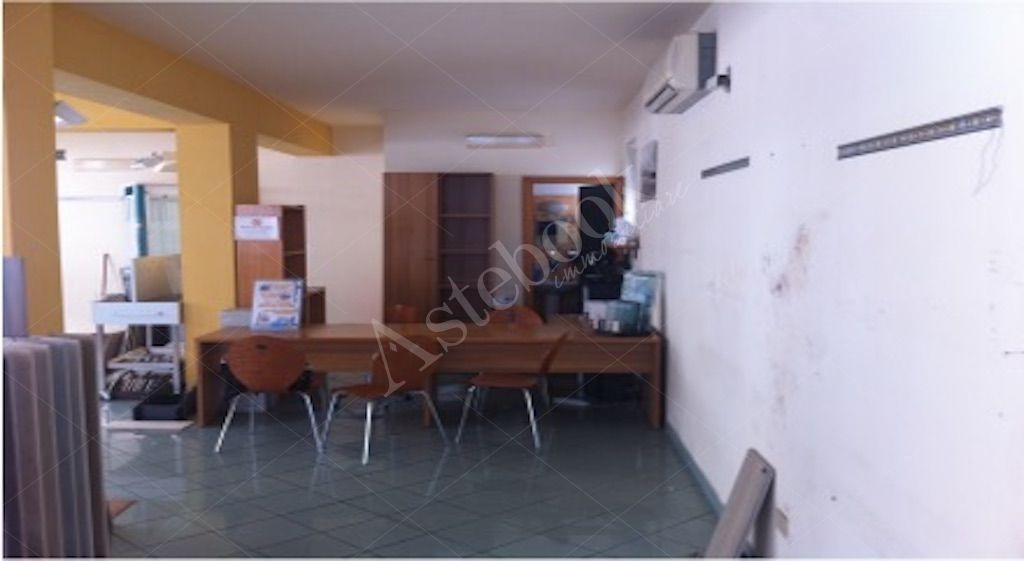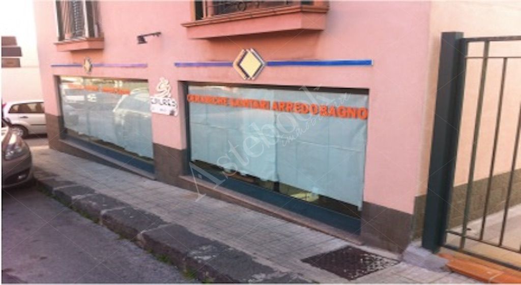 locale commerciale di 84 mq, posto al piano terra di un edificio di quattro piani, in un contesto urbano misto composto da attività residenziali e commerciali.